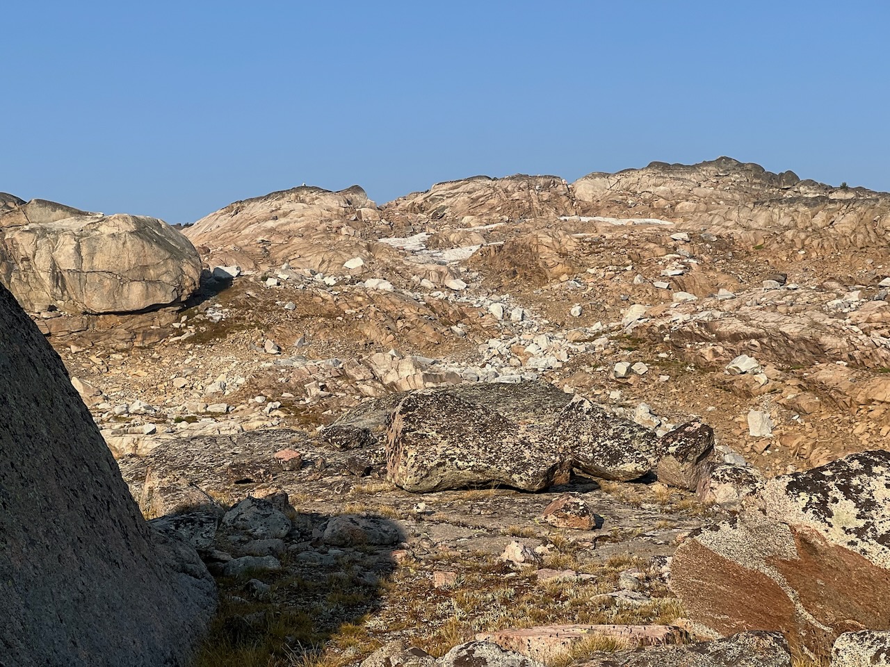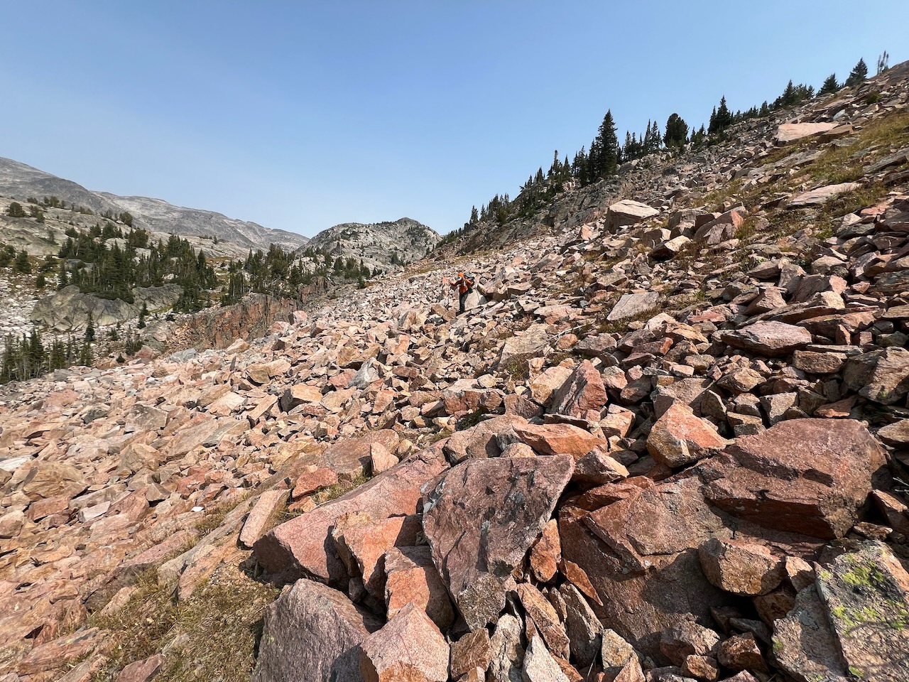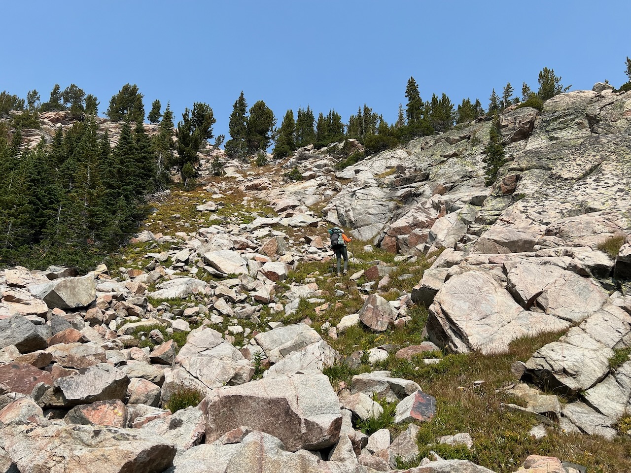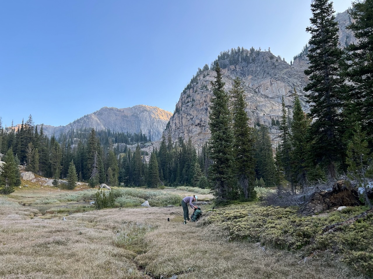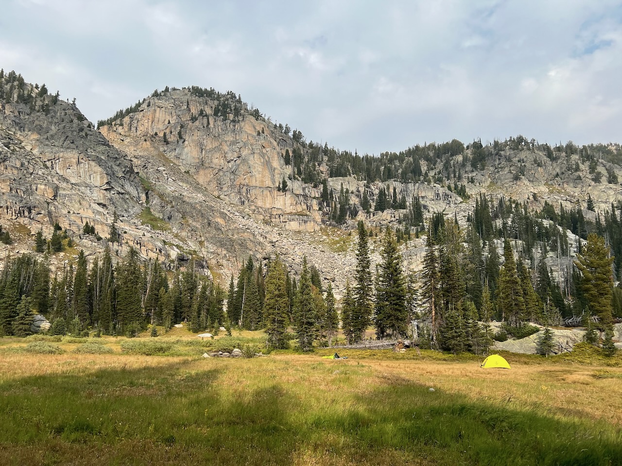 We climbed down some steep talus to the meadow near Lake Ouzel and made camp.